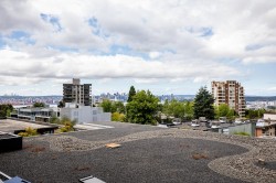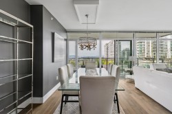 Bright 2-bed, 2-bath corner suite at The Prescott offering 944 sq/ft of interior space and a 244 sq/ft balcony with stunning city, bridge, & mtn views. Located in the heart of Central Lonsdale—steps to Whole Foods, shops, cafes, transit, and more. Floor-to-ceiling windows fill the home with natural light, while the modern kitchen features quartz counters, KitchenAid appliances, and a large peninsula with bar seating. The open living/dining area includes eng. hw floors & an electric fireplace. Bedrooms are well-separated; the primary has a walk-to-wall closet & 4-pce ensuite w/ double sinks. Additional features: guest bath with soaker tub, in-suite laundry, 1 parking, storage, bike room, and access to a gym & dog wash. Well-regarded building in a prime central location.