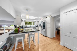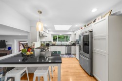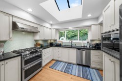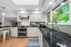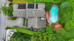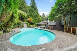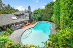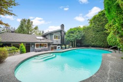 Elegant & renovated 4-bed, 3- full bath Contemporary Home in prestigious Canyon Heights. This 2,680 sq ft home sits on a private 8,059 sq ft lot featuring a secluded solar-heated pool oasis, stunning stonework & lush professional landscaping. Inside, enjoy an open-plan gourmet kitchen with stainless appliances, skylights, and sleek finishes. Hardwood floors & 100% wool carpets, California shutters & 2 gas fireplaces add warmth. A sunken family room, games/media area, offer nanny suite potential. EV charging, interlock brick driveway, and close proximity to Montroyal Elementary & Handsworth Secondary schools. A refined home ideal for family living and entertaining. Call your agent for a private viewing.