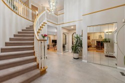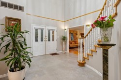 Elegant “move in ready” executive home in prestigious Grouse Woods, this spacious well maintained home offers over 4,800 sq ft of living space with 4 bedrooms up. Exceptional floorplan for family living with 6 bedrooms & 4 baths. Grand foyer has soaring ceilings, functional layout combines formal living and dining rooms with spacious, open concept, “to the studs” renovated white kitchen w/ large casual eating area & family room, perfect for both everyday living and entertaining. Reno’s in 2022/2024. Upstairs, large primary bedroom is complemented by a beautiful ensuite w sitting area. Additional highlights include an attached garage, recently updated driveway. Large 1 & den suite w/separate laundry, ideal for inlaw or mtg helper. Near Grouse Mtn skiing, Handsworth & transit. Hurry!