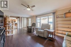 Welcome to perfect retirement living in Country Lodge! This large home boasts a spacious open layout featuring 3 bedrooms, 2 full bathrooms & laundry area. The vaulted ceiling adds to the grandeur of the living area & makes it feel even more spacious. You will love the bright & airy feel of this home, which is filled with natural light. The large kitchen is perfect for whipping up your favorite meals & features plenty of counter space & storage for all your cooking needs. Stainless steel appliances with newer fridge, beautiful stone backsplash & deep corner sink. Flooring is a mix of tile, laminate & hardwood in the main bedroom. Generous sized bedrooms, and primary bedroom has the convenience of a 4-piece ensuite. Large laundry room with new washer & dryer and room for a small freezer. Added features include a new A/C unit and upgraded metal roof. Enjoy your morning coffee or watch the sunset from the covered front porch, enclosed for a pet but can be opened up to enhance your view. The low maintenance yard is perfect for those who want to enjoy outdoor living without extensive upkeep. Two outdoor storage sheds included. Electrical inspection completed for peace of mind. Country Lodge welcomes age 55+ and one small indoor pet. Owner occupied only, no rentals permitted. Pad rent is only $500/mth and includes sewer, water & garbage. Located close to recreation, golf, wineries, shopping & town amenities. Make your move to affordable living in the beautiful South Okanagan! (id:27)