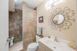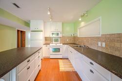 Outdoors, enjoy a fully enclosed garden/play area, a large custom post-and-beam arbour, and a garden/tool shed—perfect for the hobbyist or gardener. The double semi-detached garage provides secure parking and storage, with a spacious driveway for extra vehicles.