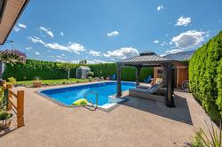 Experience lakeside living at its finest in this fully renovated 3-bedroom, 3-bathroom family home with a large den, located just a short 3-4 minute walk from the beach, Lions Park, and the Marina in Osoyoos. Boasting stunning lake and mountain views from every window, this home offers both modern luxury and a serene, private setting. The open-concept interior is beautifully updated with energy-efficient windows, sleek finishes, and ample natural light throughout. Step outside to enjoy your own resort-style oasis, featuring a heated saltwater pool with a rubberized deck, a 6-person hot tub, and an expansive upper deck with a gas BBQ hookup, perfect for entertaining. The fully fenced backyard is beautifully landscaped, with low-maintenance gardens and an irrigation system controlled via a phone app. Inside, a heated double-car garage with SwissTrax flooring provides plenty of space for storage and hobbies, while the lower level features a full bar for entertaining. Located in a quiet cul-de-sac, this home is just minutes from downtown Osoyoos, shopping, and dining. Don’t miss the opportunity to own this exceptional property—schedule your private viewing today!