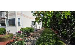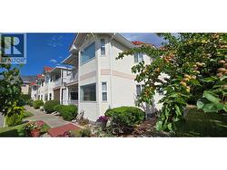 This ground-level end townhome, situated within a small and well-maintained complex, offers two bedrooms and two full bathrooms. The property features tasteful updates throughout, including laminate flooring, modern fixtures, neutral decor, and generous storage with custom organizers. Occupying a prime location with no shared walls, the bright and airy residence provides exceptional privacy. Residents will enjoy a charming patio with unobstructed sunset views overlooking a tranquil vineyard, as well as a peaceful outlook from the kitchen that includes mature trees and grassy areas. The home is conveniently located just a six-minute walk from the beach, set apart from busier tourist zones and dense neighborhoods while remaining within easy walking distance to all amenities. Easy access to walking and biking trails. Additional benefits include covered parking, a storage locker at the entrance, low strata fees, and no age restrictions. Measurements to be verified if important. (id:27)