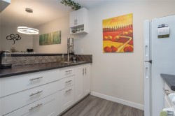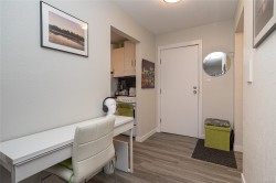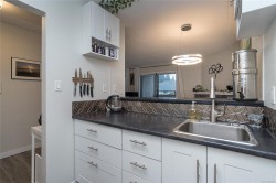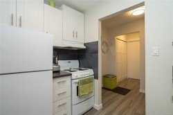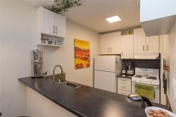 CONVENIENT PARKSVILLE CONDO IN IDEAL DOWNTOWN LOCATION. Welcome to this bright, tastefully updated 2nd Floor Studio suite in the well-managed Ocean View complex. The Great Room serves as both a living and sleeping space, featuring a Murphy bed, neutral décor, and laminate flooring. Sliding doors open to a covered balcony, extending the living space outdoors. The white, bright galley kitchen offers newer cabinets, fixtures, and an eating bar. The updated 4 pc Bath has newer cabinetry, fixtures & tile w/ ample closet space throughout the unit. Building amenities include shared laundry, bike rm, hobby/workshop rm, storage area, and community garden. One parking stall included. Recent updates include a new roof. Ideally located within walking distance to shopping, restaurants, amenities, and Parksville Beach. An excellent option for first-time buyers, downsizers, retirees, or investors seeking low-maintenance living in a central location. No pets permitted. Meas. approx.
