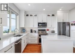 Experience luxury living with breathtaking panoramic lake views from every room in this stunning Rancher WITH basement. Over $65,000 in high-end professional upgrades have been completed in the past few years, including a brand-new gourmet kitchen with island and spa-inspired bathrooms. Spanning approximately 2,650 square feet, this beautifully appointed home offers 2 spacious bedrooms plus a versatile den-perfect for a home office or guest room-and 3 fully upgraded bathrooms featuring modern finishes and elegant touches. The chef's dream kitchen showcases a large island, gleaming granite countertops, stainless steel appliances, and a walk-in pantry. Cozy up to the gas fireplace beneath soaring vaulted ceilings and gleaming hardwood floors that add warmth and sophistication. The huge recreation room is ideal for entertaining or relaxing with family and friends. Step outside onto your private deck equipped with a natural gas BBQ outlet and soak in the unforgettable panoramic lake views stretching 180 degrees across the horizon. With a double driveway for ample parking and exclusive access to the clubhouse, this home masterfully combines comfort, style, and nature's beauty. Don't miss your chance to live the lakeview lifestyle you've been dreaming of! (id:27)