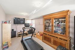 Bedroom downstairs with bathroom, storage room, office and large games room with pool table