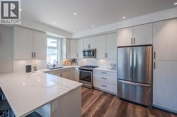 OPEN HOUSE SATURDAY FEB 7 10am-11am. Welcome to this bright, corner two-bedroom, two-bathroom unit in one of downtown Penticton’s most sought-after modern residences. Positioned in the vibrant core, this south-east facing suite captures beautiful morning light and places you moments from the lakefront, beaches, local cafes, restaurants, farmers market and the beautiful Okanagan Lake. The thoughtfully designed interior features an open living layout anchored by a custom kitchen with quartz surfaces, stainless steel appliances and a gas range, ideal for everyday living and entertaining alike. Step outside to your private balcony complete with a natural gas BBQ connection. The building offers secure entry and low-maintenance ownership, making it an excellent option for full-time residents or seasonal owners. Pet-friendly and rental-friendly with restrictions. This is downtown living at its most convenient, comfortable and connected. Book your private showing today. A rare opportunity in a prime corner position you will love. (id:27)