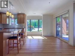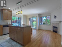BEST PRICED CORNER UNIT IN BUILDING! Welcome to easy living in this bright, move-in ready condo located in Phase 2 of Athens Creek Towers—perfectly positioned on the first floor as a SW CORNER unit, just steps from the main entrance, elevator, and your underground secured parking stall. Whether you're downsizing or looking for a low-maintenance lifestyle, this home has it all! This 2 bedroom, 2 bathroom unit offers a smart open layout with laminate flooring throughout, large windows wrapping around the living space for natural light all day, and a gas fireplace you can enjoy from the kitchen, dining, and living areas. The spacious patio expands your living space even further. The kitchen boasts plenty of cabinetry and a large island with bar seating. The primary bedroom includes a walk-in closet and ensuite with a walk-in shower, while the second bedroom is perfect for guests, hobbies, or a home office. Modern comforts include hot water on demand, central heating and cooling, and in-suite laundry. There's also ample in-unit storage to keep everything tidy, while also having a designated secured storage locker underground aswell. Step outside and you’re literally across the street from Cherry Lane Mall, Save-On-Foods, London Drugs, banks, pharmacies, a walk-in clinic, and Lions Park. Pet-friendly building allows 2 pets (dogs or cats). Great amenities like a fitness room, library, and regular social events. Quick possession possible (id:27)