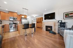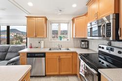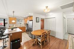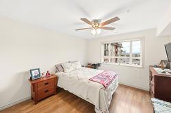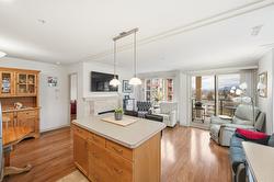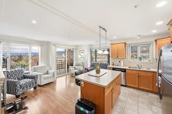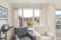 Views for miles from this bright, well appointed north east corner unit. This two bedroom, two bathroom home offers an abundance of natural light and huge windows, welcoming the sunshine into the open concept main living area. The kitchen space includes an island with storage and seating, a pantry closet, and all appliances including a built in microwave. The spacious primary bedroom offers a walk through closet and a private ensuite with walk in shower. The second bedroom is a versatile space with a custom made Murphy bed with built in desk and shelving, great for a work space or hobby area. Other features include a gas fireplace, in suite laundry, of course the main full bathroom with tub/shower combo, hot water on demand, central air conditioning and forced air heating. Being only steps to Cherry Lane Shopping Center, direct access to the bike lane and the transit hub, a car is not a necessity living here. However, included with this unit is a secure underground parking stall and a storage locker. Amenities of this complex are an exercise room, an incredibly organized library and a meeting room. All ages are welcome, pets are allowed with some size restrictions and there are no short-term rentals. Call for your private viewing today.