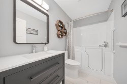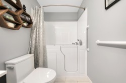 Welcome to Parkside Estates, a 55+ community in Pitt Meadows. This rancher-style 2-bed/2-bath townhome is move-in ready and extensively renovated, featuring brand new bathrooms with in-floor heating, a full-size walk-in shower, and a luxury walk-in tub; new laminate flooring; fresh paint throughout (trim, doors, and mouldings) updated lighting, a new furnace, A/C, and hot water tank. The spacious kitchen includes an eating nook, updated countertops and appliances, and a sliding door to a private patio. A bright living/area with a new fireplace anchors the home. The primary bedroom offers a bay window and a 3-piece ensuite. Secure RV and visitor parking, ample storage; pets and rentals allowed with restrictions.