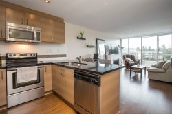 SOLARIS- Pitt Meadows only concrete and steel building! This bright East facing 1 bedroom 1 bathroom home boasts an open and bright floor plan with floor to ceiling windows for tons of natural light. Fresh paint throughout and updated carpets. The kitchen offers a light colour scheme, granite counters and stainless steel appliances. Dining room has an area for a small table and nook for a office or coffee bar. Cozy living room with an electric fireplace and access to your balcony. Steps to the recreation centre, transit stops including the West Coast Express, schools, shopping, library and coffee shops/eateries. Rentals allowed, no pets, 1 parking stall and a storage locker. Pitt Meadows best location for all required amenities! Call today!
