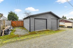 Detached two-bay garage — ideal for storing toys, creating a workshop, or setting up a studio — is a huge added bonus to this well-maintained 2-bedroom rancher in central Port Alberni! Located close to the pool, multiplex, high school, and shopping, the home offers a bright living room with gas fireplace, a functional galley kitchen with shaker-style cabinets, and a spacious primary bedroom with two closets. Updates include a newer roof on the house and garage (2018), thermal windows, new exterior doors, and two ductless heat pumps. Covered patio, fully fenced backyard, and rear-lane access with extra parking complete the package. Don't wait on getting into this one!