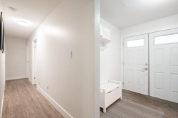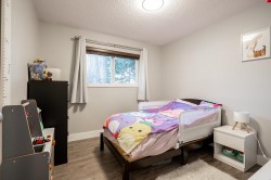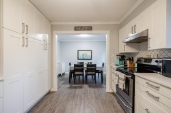 Lovingly maintained rancher tucked away on a quiet street. 3bed/2bath w/ fully fenced yard, dedicated shed, 281sqft deck & park view. Renovated bright modern kitchen w/ abundant custom soft-close cabinets, stainless steel appliances, & backsplash; open to dining room on one side & dedicated laundry area w/ front loading Samsung washer/dryer & backyard access on the other. Bright living room w/ oversized window for natural light, updated electric fireplace & pot lights installed same time as new vinyl flooring (uniform throughout home). Primary bedroom w/ wainscotting & 4pc updated ensuite w/ jetted soaker tub. 2 additional bedrooms & 4pc main bathroom. Private backyard w/ new retaining wall & cedar fence stained to match deck. Walking distance to schools/parks./trails.
