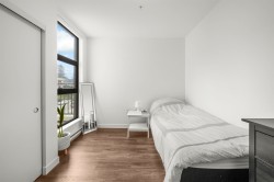 2 BED + 2 BATH + DEN corner unit in the heart of Port Coquitlam! This 1,058 SqFt home offers soaring ceilings, a bright and airy open-concept layout, a huge wrap-around balcony on the quiet side of the building, and abundant natural light throughout the day. Both bedrooms feature walk-in closets, there's a large in-suite storage room for all your needs.Fisher & Paykel appliances including a paneled fridge, blends beautifully with modern cabinetry. A/C keeps the entire home cool in summer. Feels brand new! Incredible building amenities:dog wash station,party room,gym,bike locker, and an epic 2,100+ SqFt rooftop SKY LOUNGE with BBQ/kitchen,community garden,dining areas,and panoramic mountain and city views. Coquitlam Centre, Costco, Walmart close-by! Open House Saturday 2-4PM