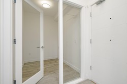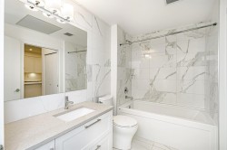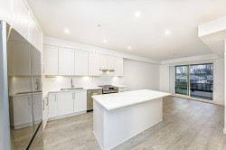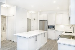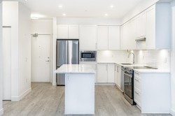 Rare Find! Welcome to THE BLOC by Maclean Homes. This spacious 1-bedroom + large den (easily suitable as a small bedroom) is tucked away in a quiet, south-facing location, offering bright and airy living w/ 9-foot ceilings & laminate flooring throughout. The generous kitchen features an extra-large island with ample storage, perfect for cooking & entertaining. A well-designed layout includes a Jack-n-Jill bathroom and a king-size primary bedroom complete with a walk-in closet. Enjoy low maintenance fees (includes hot water), a secure bike room conveniently located on the main level, and access to an amenity room. Unbeatable location! Walk to schools at all levels, parks, shopping, &restaurants. Just minutes to Coquitlam Centre, the Evergreen Line, West Coast Express & steps to poco trails.