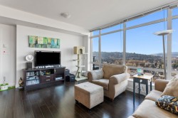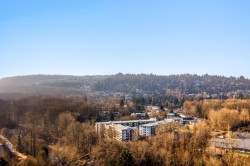 Experience SUB-PENTHOUSE living in Port Coquitlam's only concrete high-rise. this bright NW facing corner home features floor-to-ceiling windows, quartz countertops, stainless steel appliances, and a timeless open layout with generous prep space. Enjoy year-round sunsets with sweeping west facing views. Amenities include a large gym with treadmills overlooking Lions Park, games room, meeting room, and private garden. Steps to Gates Park, PoCo Trail, playgrounds, PoCo Rec Centre, and close to Lougheed Hwy & Hwy 1. Parking included.