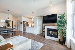 This bright, south-facing unit offers one of the best layouts in the prestigious SOUTH VERDE! Enjoy 1030 sq ft of well-designed living space w/high ceilings, abundant natural light and laminate/tile flooring throughout. This 2 bdrm, 2 bath home features a renovated kitchen w/all newer stainless steel appliances, quartz countertops and white cabinetry. Open concept dining/living rm w/electric f/p and sliders to your covered patio, perfect for year-round enjoyment. The bdrms are located on opposite sides of the unit, offering excellent privacy. Bathrooms feature new countertops. Ensuite offering a separate shower and deep soaker tub. Den has been transformed with built in storage. Great location across from Gates Park all levels of schools, shopping, library & West Coast. OH SUN 12-2PM