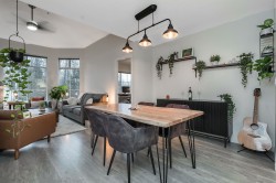 Dream PENTHOUSE —a bright, airy oasis with soaring vaulted ceilings and gorgeous garden views! Imagine mornings sipping coffee bathed in sunlight and evenings entertaining friends in your open-concept living space, complete with sparkling white granite counters and stylish new lighting & updated bathrooms and fresh Paint throughout!. Each bedroom is perfectly placed for privacy, making it ideal for roommates or guests. Cozy up by the gas fireplace ( gas is included in your strata) or fire up the grill for a balcony barbecue. There’s plenty of room for game nights, dinner parties, or just relaxing after a stroll along the nearby Traboulay Trail. With transit, parks, and downtown Port Coquitlam at your doorstep, every day feels like a getaway. OPEN HOUSE SATURDAY JANUARY 31ST 1-3PM