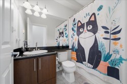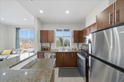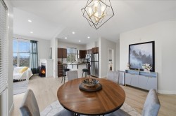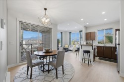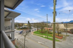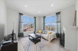 Vibrant community and perfectly located 1,041 SqFt home. 2 Bed 2 Bath Top Floor Corner on quiet side of building in downtown Port Coquitlam. Stunning mountain views. Bright, open layout has vaulted ceilings in LivRm with gas fireplace, Separate Dining Space, NEW Laminate Flooring & fresh paint throughout. Kitchen has granite counters & S/S appliances. Primary Bedrm fits large furniture with double walk-through closets to private ensuite. Enjoy in-suite laundry/storage, & separate locker. Building is Pet Friendly with Amenities: gym, meeting room, & guest suite. Steps from the new PoCo Community Centre, Leigh Square, cafes & restaurants. Walk to Gates Park, the Traboulay Trail, & off-leash dog park. Prime location for commuters, easy access to West Coast Express & bus routes.