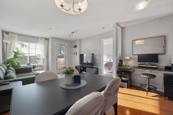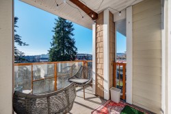 Welcome to a private top floor retreat offering a bright, South-facing 1 bed, 1 bath home just under 700sf of peaceful living. This rare unit has no neighbours on either side, delivering exceptional privacy. Enjoy direct access to the rooftop terrace right outside your door, perfect for relaxing or entertaining. The well-designed layout features an open living space filled w/ natural light & a spacious bedroom complete with walk-in closet. Located close to nature incl. Hyde Creek Rec Centre, Coq. River, nearby parks & mtn hiking trails, & convenient to lots of shops across the street & Coquitlam Centre. Easy access to Bus & SkyTrain makes commuting simple. A rare blend of privacy, sunshine & central living! OPEN HOUSE JAN 24th - 2 to 4pm