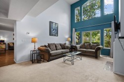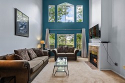 This tastefully designed West facing 1860 SF, 3 level 3 BED/2.5 BATH home in the gated community of Parkview Ridge features lovely vaulted ceilings, custom windows showcasing stunning sunsets & VIEWS over Colony Farm Park, TWO gas fireplaces & DOUBLE Side by Side Garage! Step upstairs to your magnificent primary suite occupying its OWN floor, with huge ensuite. Features include HOT WATER ON DEMAND, luxury vinyl flooring and newer furnace! Enjoy your kitchen with an island, wonderful for entertaining, which flows out onto your large private back yard. Hunter Douglas blinds, with motorized blinds on lower floor! Loads of storage throughout. OPEN HOUSE SAT JAN 17, 2-4!