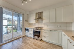 Primely located 3Beds3Baths townhome with easy access to schools, shops, restaurants, downtown PoCo, Coquitlam Center, Westcoast Express and SkyTrain. Enter through the gated yard and foyer to discover a bright main floor featuring 9’ ceilings and laminate flooring throughout. The open south-facing living/dining area is spacious and filled with natural light. The modern white kitchen boasts S/S appliances, quartz countertops, ample cabinetry with soft-close drawers and is open to a generous deck w/gas hookup. Master bdrm has walk-thru closets & luxurious 4pcs ensuite. All bathrooms have motion sensor lights. Super deep double tandem garage is prewired for EV. The window and extra space in garage also add flexibility for use as a home office or gym. Plenty of street parkings available.