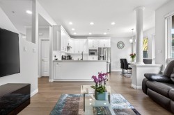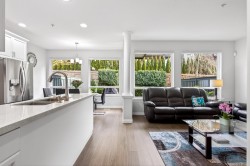 Beautifully renovated townhome offers over 2,500 sq.ft. of luxury. Newer Hotwater on Demand,Furnace,Central A/C.New luxury Vinyl Plank Flooring, 9-foot ceilings, House size living and Dining rooms.At the heart of the home is a stunning,crisp white kitchen,complete with sleek quartz countertops,ample cabinetry.The open concept layout provides direct access from the eating area to a flat 200 sq.ft cement deck with plenty of grass and garden area,ideal for outdoor dining.The spacious primary bedroom is a true retreat,showcasing vaulted ceilings,soaker tub, walk-in shower and closet.The additional bedrooms are sizeable .Renovated main bath.The finished lower level offers a Recroom,office,and a roughed-in bath.EV CHARGER.With its stylish renovations this home is move-in ready.
