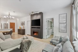Welcome to Suter Brook! 2 Bed + Den Ground Floor Home in highly desirable area of Port Moody! Beautifully updated kitchen cabinets, quartz countertops, stainless steel appliances, laminate flooring, custom fireplace, custom closets in both bedrooms with tons of storage and fresh paint throughout. Step out to your private fenced yard enjoying an evening by the Firepit and grilling on the BBQ or head out for a walk on the connected Trail. Steps to Suter Brook Village which offers a Grocery Store, Restaurants, Shops, Banks, Gym & Coffee Shops. Also walking distance to Rocky Point Park, Breweries, Newport Village and Skytrain. Building amenities include Fitness Center, Guest Suites and Party Room. 2 Parking (Tandem) & 1 Storage Locker Included.