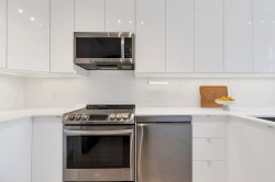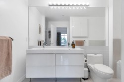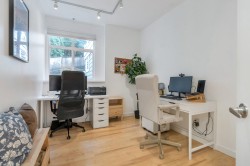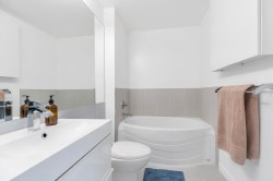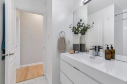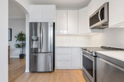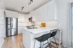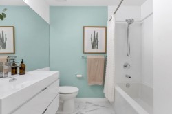 Welcome to this stunning corner-unit home in the heart of Port Moody, offering space, light, and style in one beautifully renovated package. Spanning over 1,376 sq. ft., this 3-bed, 2 bath has it all! Soaring vaulted ceilings and expansive windows flood the home with abundant natural light. The fully renovated interior showcases modern finishes throughout, creating a clean, contemporary aesthetic that’s both stylish and comfortable. The thoughtfully designed floor plan includes generous bedrooms and the convenience of in-suite storage. Two parking stalls located on the same level as the unit—a rare and highly sought-after feature—plus a storage locker.