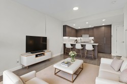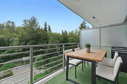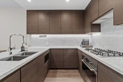 Experience elevated urban living in the heart of Suter Brook Village at The Grande. This bright one-bedroom home features a well-designed open layout with a contemporary kitchen offering sleek cabinetry, a gas cooktop, integrated appliances, marble countertops, and a spacious island ideal for everyday living and entertaining. The living area opens to a private balcony with excellent natural light, while the bedroom offers generous storage and comfort. Additional highlights include a modern bathroom, full-size laundry, air conditioning, a heat pump, EV parking with charging, and a storage locker. Enjoy over 40,000 square feet of resort-style amenities and a prime location just steps to the SkyTrain, Rocky Point Park, shoreline trails, cafés, restaurants, and shopping.