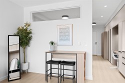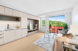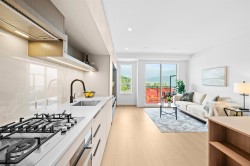 Brand new 1 bedroom home at Hue by Marcon with spectacular mountain and Inlet views. Ideally positioned at the end of Barnet Highway, this home offers quick access to downtown Vancouver while being surrounded by Port Moody’s parks, trails, and waterfront. Bright and modern interior with floor-to-ceiling windows, Italian cabinetry, stone counters, high-end appliances, and an impressive amount of in-suite storage. A built-in desk provides the perfect work-from-home solution, while an oversized locker adds even more space for outdoor gear. Residents enjoy premium amenities including a rooftop terrace with sweeping views, fitness centre, co-working lounge, garden plots, kids play area, dog wash, and EV-ready parking,all backed by 2-5-10 Home Warranty for peace of mind.