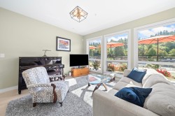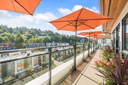 Experience the PENTHOUSE COLLECTION at George by Marcon. This rare south-facing 2-bed+den, 3-bath residence offers over 1,100 sq. ft. of sophisticated living space, perfect for those seeking a house-sized feel. The open-concept interior is flooded with natural light, overlooking a serene greenbelt and lush hillsides. Both bedrooms feature updated plush carpets and private ensuites with heated floors. Enjoy a versatile 100 sq. ft. den, guest powder room, and the comfort of A/C. This home is complete with window screens for days you want to enjoy the fresh air, 2 parking stalls and a large private storage room. Located just minutes from Moody Centre Station, Rocky Point Park, and the best of Port Moody’s vibrant lifestyle. A perfect blend of luxury and location!