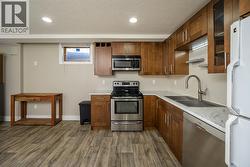 Stunning 5-bedroom, 4-bathroom home on an expansive lot with exceptional upgrades! This spacious property features a brand-new kitchen (2024) designed for modern living, complete with high-end finishes & appliances. The primary bedroom offers a private retreat with direct access to a sundeck, perfect for morning coffee or evening relaxation. Enjoy the comfort of remote-controlled blinds, A/C, & the convenience of an in-ground sprinkler system to keep the professionally landscaped yard lush & green. The double garage provides ample parking & storage space. Whether you're entertaining guests or enjoying quiet family time, this home offers the perfect balance of space, style, & comfort. Plus a 2 bedroom basement suite and a fantastic $5000.00 decorating bonus to the buyer on completion. (id:27)