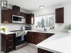 Set on a prestigious 1.18-acre lot in sought-after Valleyview, this home offers a blend of privacy & style, on a quiet cul-de-sac & backing onto green space for that true “away from it all” feel. This modern home has seen numerous updates featuring a bright, open-concept kitchen/lounge/dining area on the main with 3 bed and 3 bathrooms, main-floor laundry, & formal dining area. The kitchen is bright & finished with quartz countertops & bathrooms are updated. The basement adds incredible versatility, offering 2 additional bedrooms (one with a WI closet), a large family rm, 2 flex rooms & laundry. Step outside to your own private oasis with a large sundeck & an expansive fenced backyard backing onto green space and stunning sunsets & views. Measurements approx., verify if deemed important. (id:27)