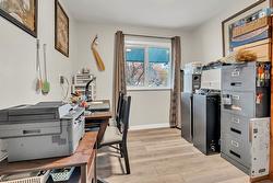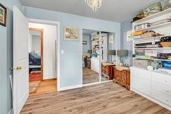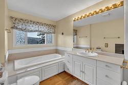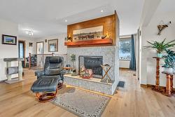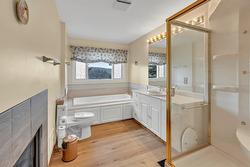 High-end finishings are showcased throughout. From the elegant countertops and custom tile work to the beautifully appointed fireplaces to the hickory accents. The luxurious primary suite is a private retreat, featuring a double-sided fireplace shared with the spa-inspired ensuite, a large soaking tub, and a generous walk-in closet. Formal dining room, breakfast nook, expansive livingroom and updated bathroom complete this executive home.
