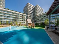 Welcome to The Paramount – Modern Living in the Heart of Richmond! This 3 years old south-facing 1-bedroom + Den unit features an open-concept layout, top-quality finishes, A/C, quartz countertops, 9' ceilings, and a huge south-facing BALCONY with panoramic city views, along with sightlines to the beautifully landscaped roof top playground.. Great layout with bright interiors, large windows, and a functional den for work or storage. Exceptional amenities include a fitness centre, sauna/steam rooms, party room, meeting room, and outdoor play area. Steps to SkyTrain, shopping, restaurants & more. 1 parking included. School catchment: Cook Elementary & MacNeill Secondary.