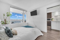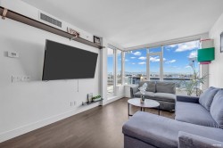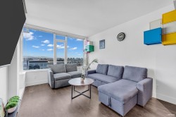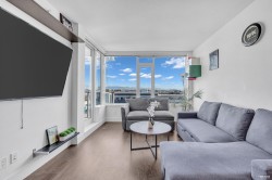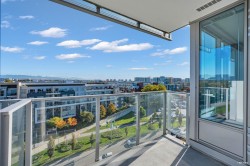 Welcome to River Park Place I by Intracorp! This well-maintained 1 Bed + Den unit with stunning Northeast-facing views of the Fraser River, Mountains & City! Features an open-concept kitchen with island, fully integrated appliances, stone countertops, A/C, wide plank laminate floors & large covered balcony. Spacious layout with semi-ensuite bath & generous living space. Amenities include concierge, gym, basketball court, theatre, study & rooftop BBQ area. Steps to Olympic Oval, T&T, shops, restaurants & Lansdowne SkyTrain. Great home or investment! 1 locker and No Parking.