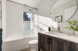 Tucked away on a very quiet street in a friendly and peaceful neighborhood, this rarely available, fully renovated 4-bedroom, 3-bathroom home offers an ideal layout for multi-generational living. The main level features two bedrooms, each with its own full bathroom, providing excellent accessibility for seniors or extended family. Upstairs offers two additional bedrooms with a shared bathroom and a versatile open landing suitable for a sitting area.The living room is located directly off the foyer and may also function as a home office. Enjoy a bright, south-facing backyard with a mature garden and an impressive over 10-foot-deep diving pool, ideal for family entertaining. Updated smart thermostat (Mysa), and EV charger outlet provides comfortable living.Steps away from school and parks.