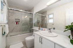 Nestled in Steveston North, this two-storey home received a complete 2022 renovation, including a new heat pump, hot water tank, 200 A electrical service and full insulation. Solid hardwood flows through the main floor into an open-concept kitchen with porcelain tile, custom quartz island and integrated stainless-steel appliances. A bonus games room can serve as a fourth bedroom. The main bathroom and all secondary bathrooms, plus the laundry room, have been fully refreshed, and the staircase has been tastefully refinished.Outside, entertain or unwind on the newly built deck and sun canopy overlooking a completely renovated, private fenced backyard. Just steps from top-ranked James McKinney Elementary and Steveston-London Secondary, this home delivers thoughtful design, modern comforts!