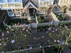 Ferndale Garden. Very spacious. 4-bedroom townhouse plus den. Total 1611 SF. Side by side garage. Corner unit. Unit is facing a park with tennis courts. Bright unit w South facing. 9' ceiling on main. Ground level has a bedroom/office. 2nd level has an open den and top floor has 3 bedrooms. Short drive to Walmart and T n T supermarket. School catchment: Anderson Elementary school and Macneil Secondary school. Brand new carpets. Townhouse is right opposite to a park w tennis court. Priced right to sell. Weekend showings only.