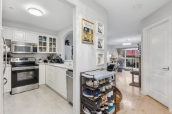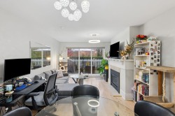 Discover spacious, sun-lit living in this beautifully updated 1 bedroom, south-facing home overlooking the park at The Hamptons. This perfect home features upgraded laminate flooring throughout for ease of maintenance, upgraded kitchen with quartz countertops and stainless-steel appliances, and new bathroom vanity. Cozy up by the gas fireplace with remote control, and enjoy seamless smart-home comfort via electronic thermostats you can manage with your phone. Step outside to a rare bonus of over 200sqft private fenced patio—ideal for quiet mornings or evening entertaining. In-suite storage space and one parking included. Just steps to the Dyke trail, Park, and Oval for effortless outdoor living. OPEN HOUSE SUN FEB 8th 2-4PM