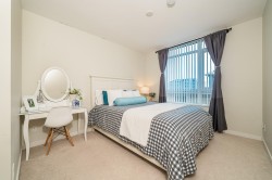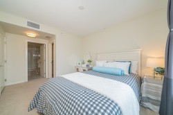 Central location across street to Richmond Center and backs to Minoru Park. This well designed 2-bedroom, 2-bathroom unit features a contemporary open layout, offering comfort. 857 Sqft living space, feathering A/C, sleek cabinetry, and high-end S/S appliances. Bedrooms are separated at different side of the living room. NO wasting space. Good size balcony if perfect for outdoor gatherings or relaxing in the sunny days. One parking and one locker. Walks to Skytrain satiation, Minoru community center, library, bank, and commercial district. Good school catchment: Brighouse Elementary & Richmond Secondary. Must See!