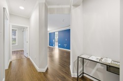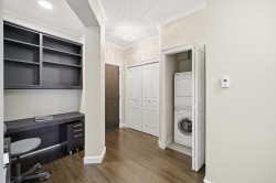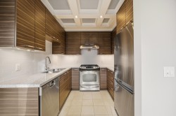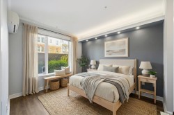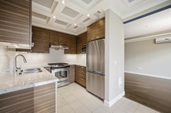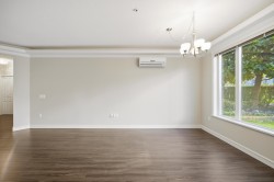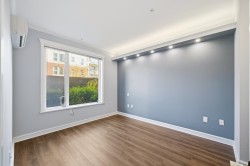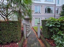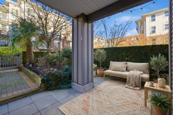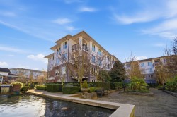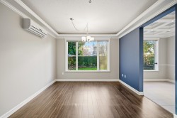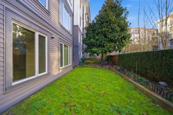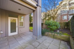 UNIQUE 3 Bed/2 Bath/Flex garden unit at the MAYFAIR PLACE by POLYGON. This elegant home, with 9' ceilings and A/C, combines the features and atmosphere of a traditional house with modern amenities. Crown mouldings throughout with coffered ceilings in the kitchen and dining area. Built-in BDI desk and wall unit in the flex space ideal for home office. Thoughtful and efficient floorplan providing both functionality and privacy. High-end Miele W/D and Bosch D/wash. Each bdrm features custom storage solutions from "California Closet Designs." Enjoy your morning coffee from the private garden patio and stroll across the courtyard to the Clubhouse. Central location, close to transit, shopping, restaurants & Tomsett Elem. 3 side-by-side parking stalls & 1 locker .Open House Feb15 Sun 2-4pm