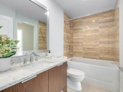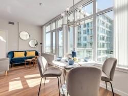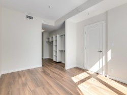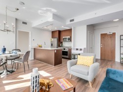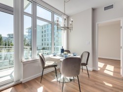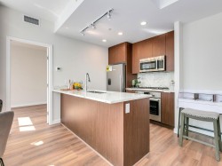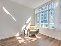 Beautiful 2 Bed + 2 Bath home at Torino with open view of interior courtyard. Quiet East facing unit with lots of natural light. Efficient open floorplan with double ensuited bedrooms. Central heating/cooling, full-size appliances, high ceilings & laminate flooring in all living areas & bedrooms. Convenient location with services, groceries, and restaurants all within walking distance and only one block from Capstan Canada Line Station. Display unit - New and ready for move in.