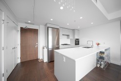 Discover Cascade City by Landa. This 901 sqft 2 bedroom, 2 bathroom SOUTH-EAST CORNER home showcases a WRAPAROUND balcony overlooking the serene courtyard. The sophisticated interior offers an open-concept layout with engineered hardwood flooring, a sleek kitchen island, and a premium Miele appliance package. Year-round comfort is provided by built-in A/C. Perfectly positioned near Richmond Centre, Aberdeen, YVR Airport, and just steps to the Canada Line. Residents enjoy exclusive access to a 3,000 sqft fitness centre, guest suite, stylish club lounge, and a landscaped 25,000 sqft podium garden. One parking and storage included.