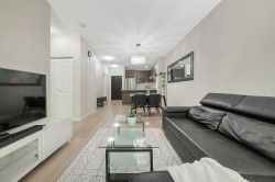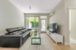 Surprise! Cozy & Private 2 Bed/2 Bath w/ Private Patio! This suite faces the Tree-lined Courtyard -- which means it's Quiet with added Security. Lots of Natural Light during the day. Popular Polygon Open Concept with a Large Kitchen Island to prep meals and great for hosting friends. Save Time & Money on Renovations! This home is Move-In Ready. AC ready to keep you cool! Recent upgrades include New Flooring and Bosch Dishwasher. Walk in and out, as the Ground-Floor means no waiting for elevators. This Polygon-built community offers exceptional amenities, like the Whistler-Themed Club House, walkable Courtyards, and a Swimming Pool. Pet and Rental-friendly. 1 Parking spot is included with lots of visitor parking. Enter the market with this Very Affordable 2 bed/2 bath at just $699K!