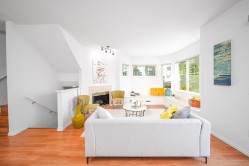 Mayflower built by Polygon, south facing corner unit, located in Terra Nova, which offers 4 bedrooms with 3 full bathrooms, 3 levels of total 1619 sqft, 9' high ceiling. Cozy south facing living room with gas fireplace features a sunny balcony and beautiful Cherry blossoms view in spring. Bright kitchen with windows provides a spacious dinning area. Walking distance to school, shopping mall and public transit. Great facilitites wih outdoor pool, excercise center and media room.YOU MUST SEE !!!