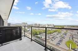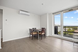 Concrete high-rise in central Richmond offering 955 sq ft, 2 bedrooms, 2 bathrooms, and stunning south-east city and mountain views. This bright corner unit features brand new hardwood flooring,air-conditioning, and an open layout perfect for comfortable living. Enjoy top-tier amenities: indoor pool, gym, sauna, yoga room, garden with water features, and a grand high-ceiling lobby. Located stepsfrom shopping, restaurants, bus, and SkyTrain. Includes 1 covered parking stall. A stylish, move-in-ready home in a prime location!