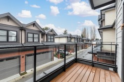 Located in Richmond’s desirable Steveston North, this contemporary duplex-style townhome offers 1,539 sqft of smartly designed living with 4 bedrooms, 4 full baths, and a flexible den/office. The main level features 10 ft ceilings and a sleek kitchen with quartz waterfall counters, matching backsplash, and premium Bosch appliances, plus efficient heating and cooling. This bright corner unit enjoys windows on three sides, a thoughtful layout, and an oversized double garage with EV charging and ample storage. Close to daily amenities, transit, RMC, YVR, Vancouver, and top schools: Steveston-London, Jessie Wowk, James McKinney, and RCS. Open house 2-4pm Dec 21