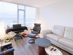 LOCATION!! Beautiful 1 bed 1 den East facing unit located at River Park Place built by Intracorp, offers a functional open concept layout that is made complete with view of the mountains, river and city. Upgraded laminate floors throughout, quartz countertops, integrated European appliances, and air conditioning. Amenities includes a 25,000 sq ft rooftop garden and a 5,000 sq ft indoor amenities (gym, basketball court, music room). Steps from Olympic Oval, T&T, new Shopper's Drug Mart and many restaurants. Comes with 1 parking and 1 locker. Contact now!